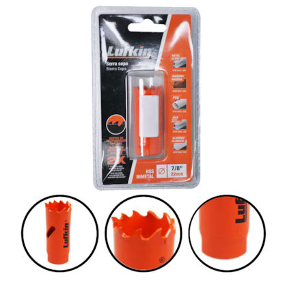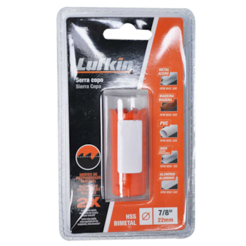 Uma excelente Serra Copo 22mm 7/8" da Lufkin, indicada para trabalhos em aço, aço inox, alumínio, madeira e pvc. Para quem precisa ter mais agilidade e eficiência no trabalho. Material resistente, fabricada em hss bimetal, que proporciona um alto rendimento e evita o desgaste prematuro dos dentes.