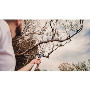 Para realizar o corte de galhos de maneira prática e eficaz, o podador de galhos com serrote profissional 13" / 330 mm Tramontina sem cabo é indispensável. Com o serrote é possível efetuar a poda de galhos de diâmetros maiores, facilmente, garantindo um corte limpo e sem rebarbas. Para galhos menores, ainda é possível utilizar o podador, garantindo agilidade durante a tarefa. Você pode acoplar esta ferramenta em cabos extensores e, assim, cortar galhos em locais de difícil acesso!
