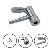 Possui conectores com uma trava dupla de abertura 19mm em aço bicromatizado CG 615D e uma trava roscada aberta de 18mm em aço bicromatizado CG 670;